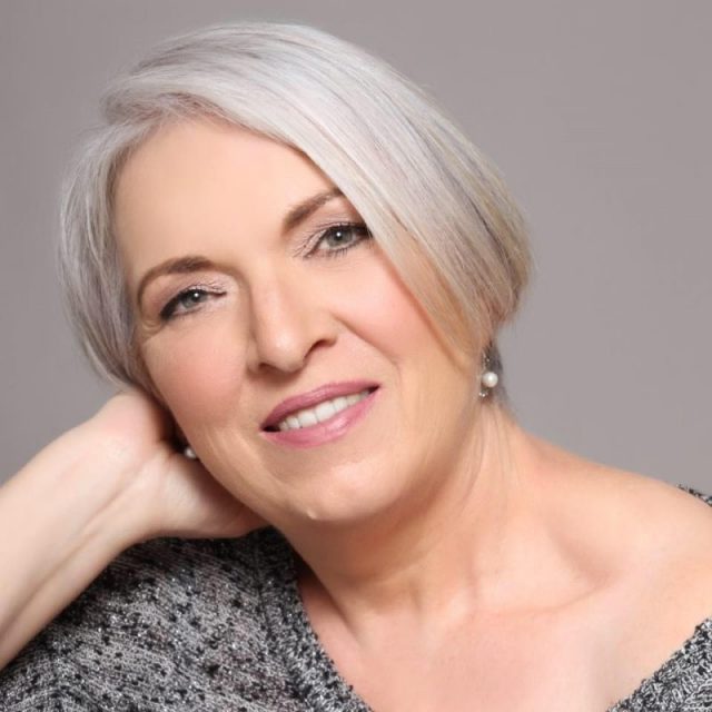 My advice is to keep your style current and trendy, have it cut often and just flaunt it – not everyone is blessed with white hair.